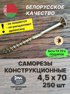 Саморезы по дереву 4,5х70 конструкционные, желтые 250 шт