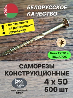 Саморезы по дереву 4х50 конструкционные, желтые 500 шт