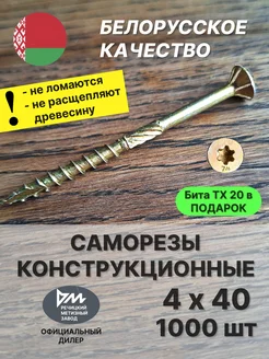 Саморезы по дереву 4х40 конструкционные, желтые 1000 шт