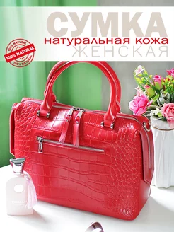 Сумка женская натуральная кожа красная под крокодила