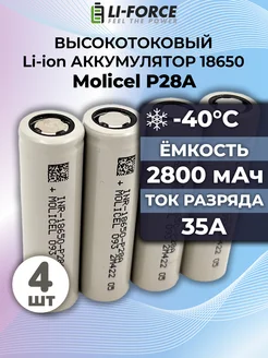 Аккумулятор Li-ion INR-18650-P28A, 3.6В, 2800mAh - 4шт