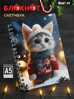 Скетчбук а5 Новогодний блокнот для рисования Котик