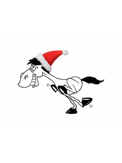 наклейка "Лошадь в новогодней шапке", ч бел, 200х150мм, вид3