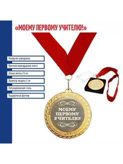Сувенирная медаль "Самый лучший в мире учитель" на ленте