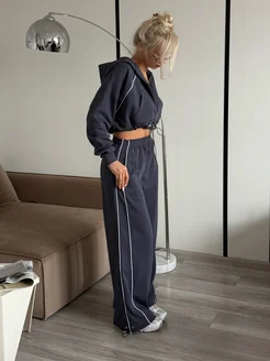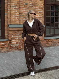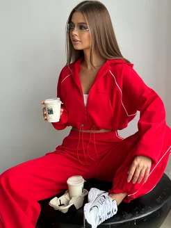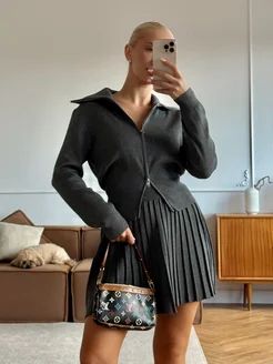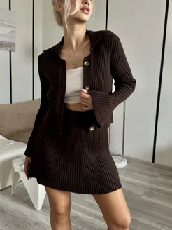 Костюм трикотажный с кофтой на молнии вязаный с юбкой