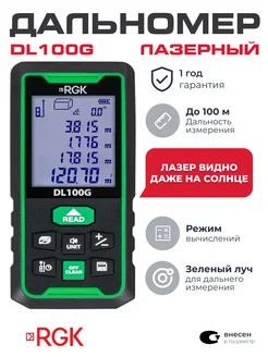 Лазерный дальномер DL100G, зеленый луч, 100 м