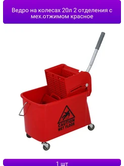 1шт Ведро на колесах 20л 2 отделения с мех.отжимом красное