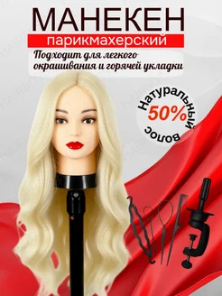 Манекен голова 100% человеческий волос, 40-45см, Виктория