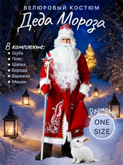 Велюровый Новогодний костюм Дед Мороз взрослый