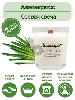 Натуральная аромасвеча Лемонграсс для ванной и удовольствия