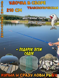 удочка в сборе 2.1 м, удочка телескопическая 2.1 м садок