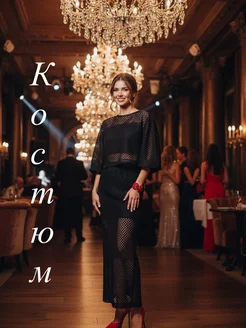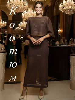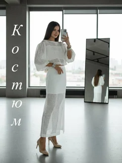 Костюм с юбкой в сетку паутинка осень