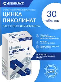 Цинка пиколинат UBF таблетки массой 250 мг 30 шт Уралбиофарм