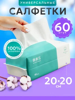 Салфетки для лица 60 штук 20х20 см одноразовые хлопковые