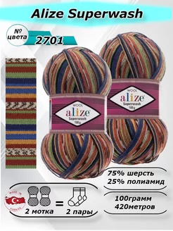 носочная пряжа для вязания спицами и крючком Ализе супервош