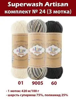 Пряжа носочная Artisan 3 мотка, набор № 24