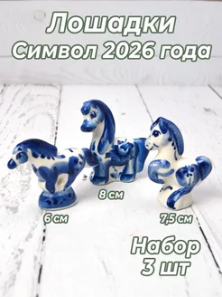 Лошадь гжель 3 шт символ 2026 года