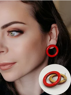Серьги кольца красные