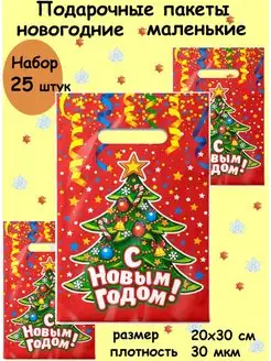 Пакеты новогодние подарочные маленькие для угощений 25 штук