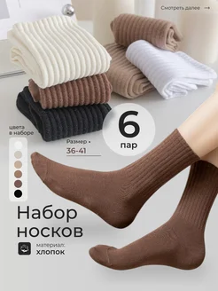 Набор носков из 6 пар в рубчик удлиненные однотонные