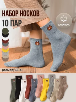 Набор носков из 10 пар удлиненные однотонные с медведями
