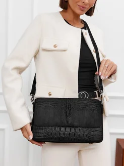 Сумка через плечо средняя натуральная кожа черная замшевая