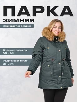 Парка Женская Большие размеры зимняя утепленная с капюшоном