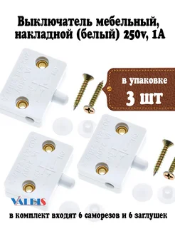 Выключатель мебельный, накладной, для дверцы, 3 штуки