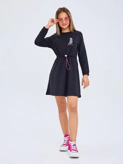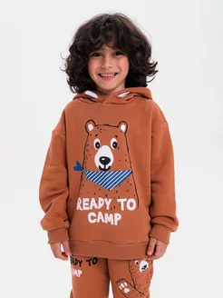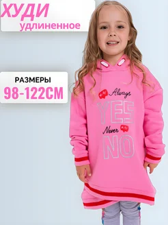 Удлинённая толстовка туника с капюшоном, хлопок с начёсом