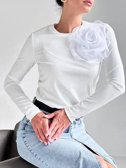 Лонгслив белый в рубчик с цветком