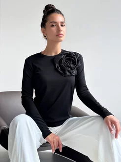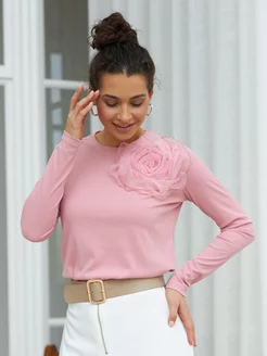 Лонгслив розовый нарядный с длинным рукавом с розой