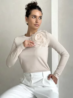 Облегающий лонгслив с цветком нарядный бежевый кофта