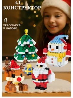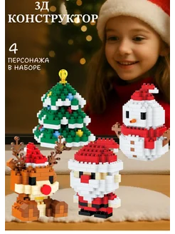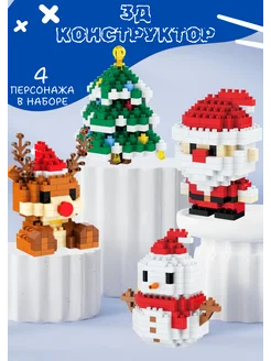 Новогодний 3д конструктор из миниблоков Дед Мороз и друзья