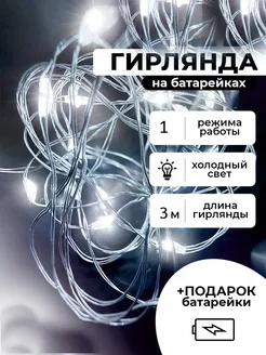 Светодиодная роса 3 м белый на батарейках