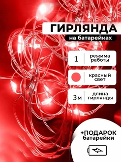 Светодиодная роса 3 м красный на батарейках