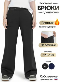 Брюки школьные классические на резинке прямые черные в школу
