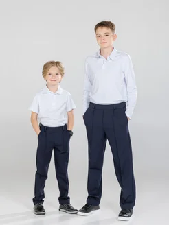 Брюки школьные классические на резинке прямые синие в школу