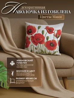 Декоративная наволочка гобелен 40х40 см диванная с маками