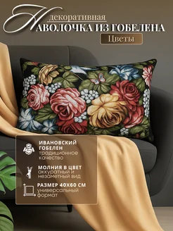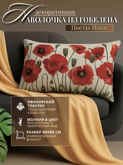Наволочка гобелен 40x60 см декоративная цветы Маки