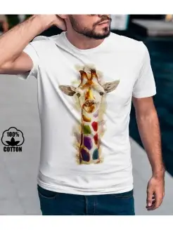 Футболка с жирафом оверсайз с необычным принтом с дизайне
