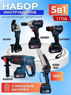 Набор 5в1 аккумуляторных инструментов 198v 6А