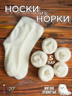 Теплые белые норковые термоноски 5 пар