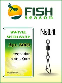 Вертлюжок рыболовный SWIVEL WITH SNAP с застежкой Hooked