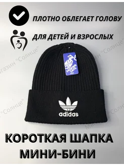 Шапка Adidas Мини-Бини Однотонная Вязаная с Подворотом