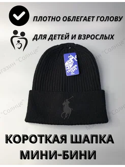 Шапка Polo Мини-Бини Однотонная Вязаная с Подворотом