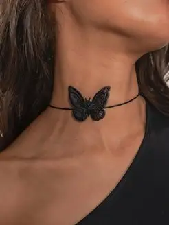 Чокер бабочка на шею из ткани бижутерия украшение на шнурке