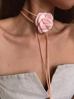 Чокер цветок на шею с розой из ткани бижутерия украшение