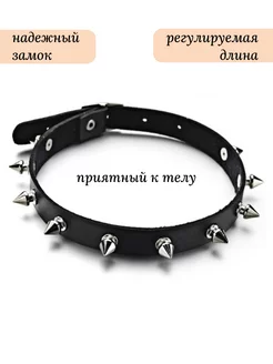 Чокер черный на шею кожаный ошейник шипы готический