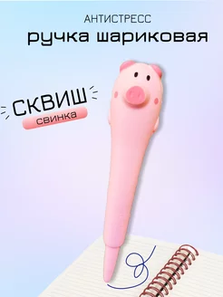 Ручка шариковая синяя для школы сквиш свинка