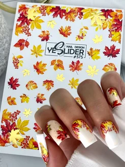 Наклейки для ногтей слайдеры осеннь листья золотые